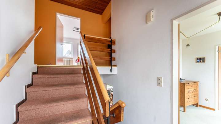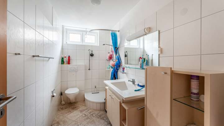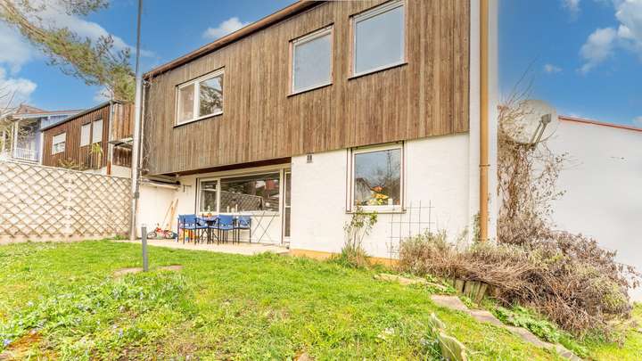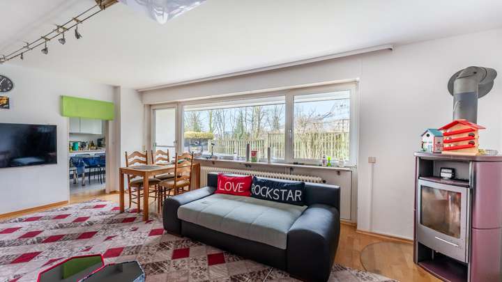 Wohnkomfort auf ca. 118 m²: Hier erwartet Sie ein Haus mit großzügigen, flexibel nutzbaren Räumen, die sich ideal für verschiedene Lebenssituationen eignen. Durch die klare Raumaufteilung finden Familie, Beruf und Freizeit ihren Platz unter einem Dach. Ein besonderes Highlight eröffnet sich im Obergeschoss – von einem der Zimmer reicht der Blick bis zum Bodensee und verleiht dem Alltag eine besondere Note. Das Objekt ist gepflegt, lässt aber Raum für Modernisierungen und individuelle Gestaltung. Kunststofffenster mit Rollläden, eine Gas-Zentralheizung sowie ein Schwedenofen sorgen für ein angenehmes Wohnklima. Eine vorhandene Einbauküche, Parkett- und Korkfußböden, ein Tageslichtbad mit Dusche sowie ein separates WC gehören zur Ausstattung. Ergänzt wird das Angebot durch eine geräumige Garage, eine Waschküche im Untergeschoss und ein bereits gedämmtes Dach. Südwest-Terrasse und Garten laden zum Verweilen im Freien ein.