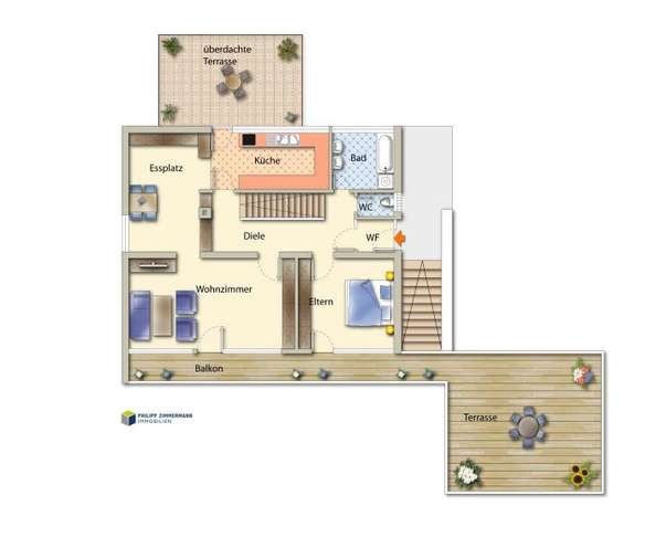 Die Einliegerwohnung verfügt über einen komplett separaten Eingang auf der Westseite des Gebäudes, dadurch ist eine gute Trennung der beiden Wohneinheiten gegeben.