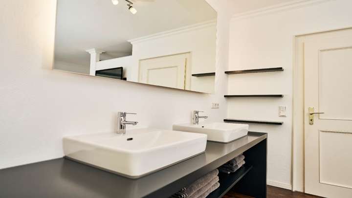 Im 2. OG wurden zwei weitere Wohn- / und Schlafräume realisiert und ein weiteres Duschbad. Der gesamte Wohnbereich ist mit dem originalen, restaurierten Parkettboden ausgestattet.