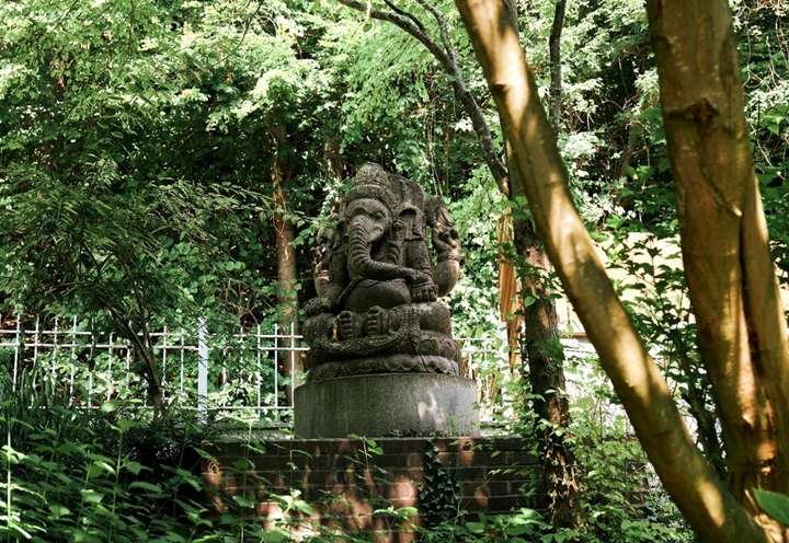 Bereits beim Betreten des Anwesens werden Sie die besondere Atmosphäre wahrnehmen. Im Garten ist ein imposanter Ganesha diskret unter einem Baum am Rand des Grundstücks platziert. Im Hinduismus symbolisiert er Glück, Weisheit und Neuanfang.