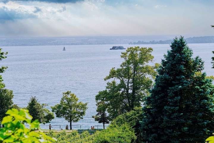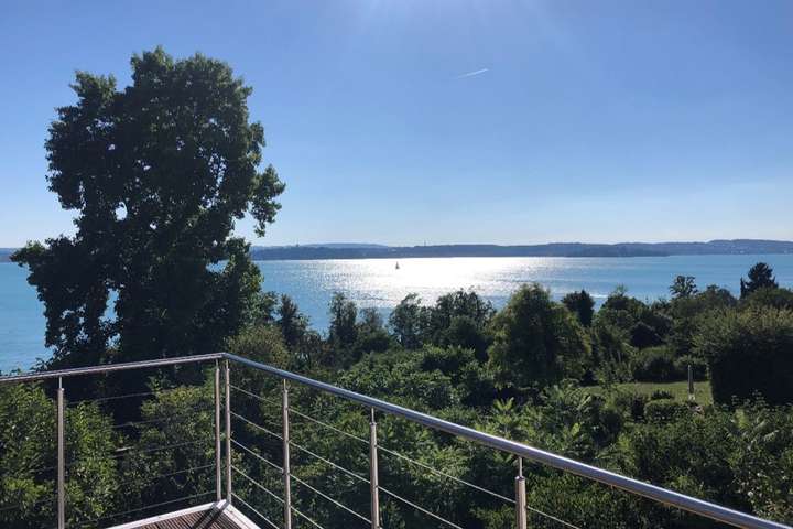 Die Villa aus den 1930er Jahren besticht durch ihre außergewöhnliche Aussichtslage. Sie liegt auf einer Anhöhe oberhalb des Bodenseeufers. Die Lage ist ruhig in einer Sackgasse ohne Durchgangsverkehr und dennoch nah an der Fährverbindung nach Konstanz. Der Panoramablick über den Bodensee ist atemberaubend.