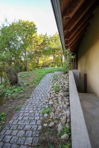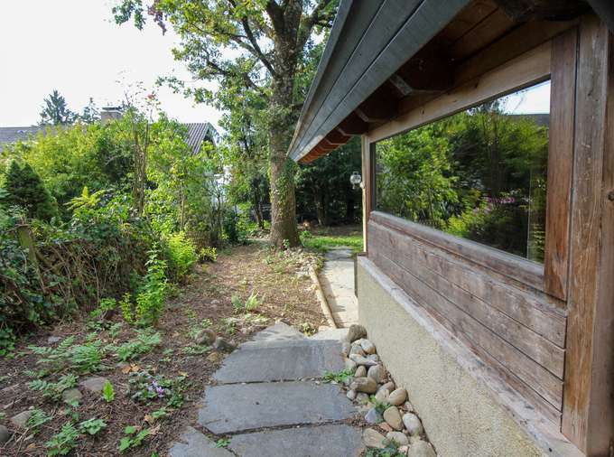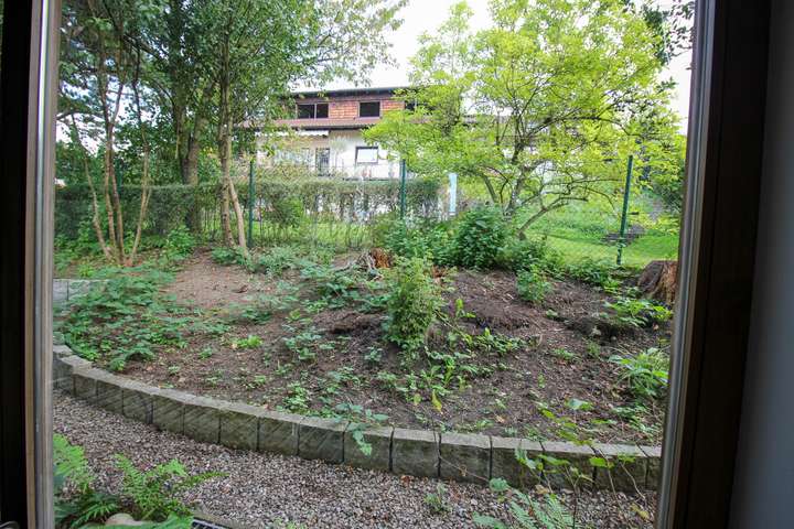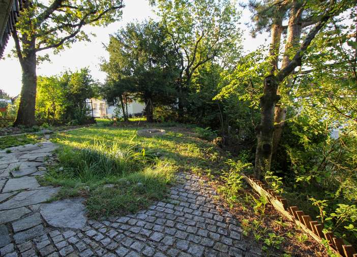 Im Garten gibt es zwei größere, geschützte Bereiche mit Grünflächen.