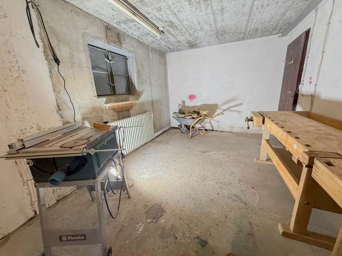 Im Souterrain ist ein weiteres Zimmer und zusätzlich drei Keller Räume. Die Werkstatt hat direkt Zugang nach draußen und der Heizraum ist vom Kellereingang im Außenbereich zugänglich.