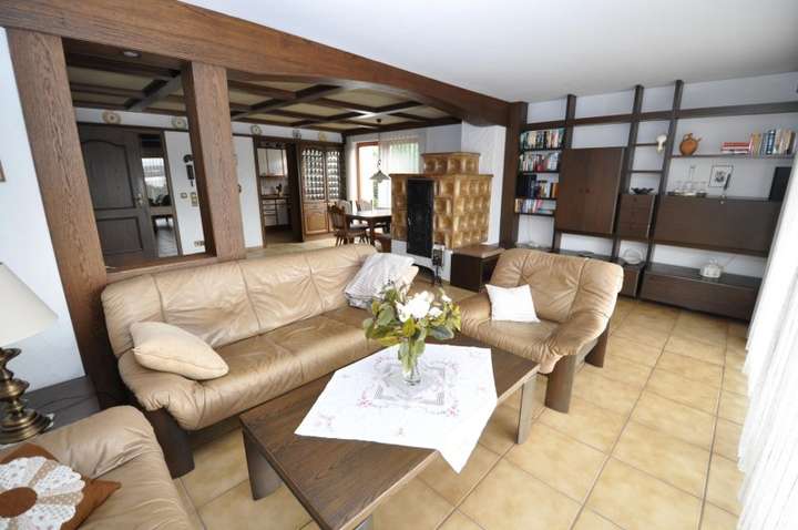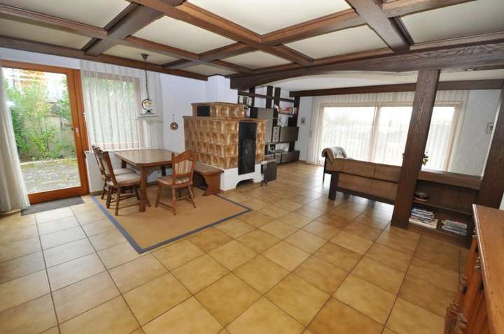 In der Hauptwohnung im Erdgeschoss sorgt ein Kachelofen für wohlige Wärme, dieser benötigt allerdings für den Weiterbetrieb einen neuen Einsatz aufgrund der aktuellen Bestimmungen.
