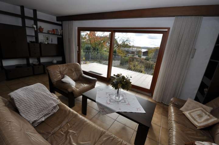 Von der Hauptwohnung im Erdgeschoss gelangen Sie auf den großzügigen Süd-Westbalkon mit schönem Teilblick auf den Bodensee.