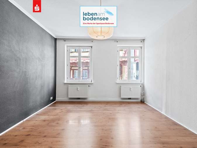Im 1. Obergeschoss eine 3-Zimmerwohnung mit ca. 85 m² Wohnfläche, diese ist leerstehend. Diese Wohnung verfügt über eine großzügige Terrasse nach Süden- von dort haben Sie Blick auf die Burg Meersburg.