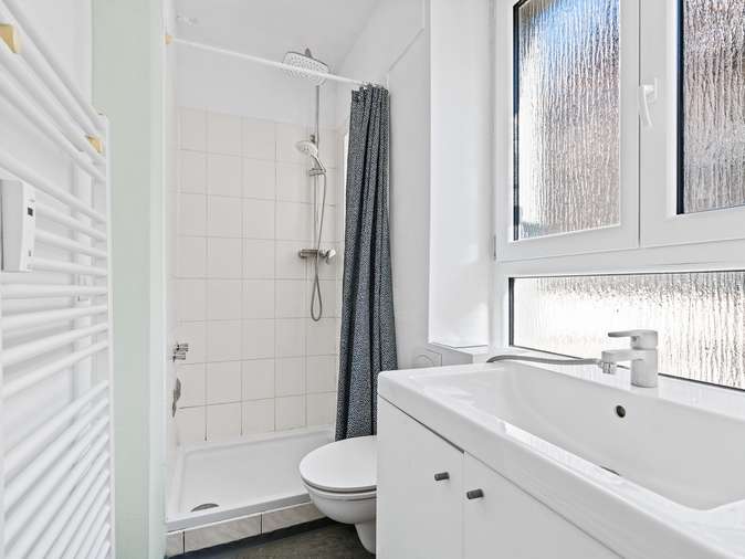 In den beiden Wohneinheiten befinden sich einfache Einbauküchen, die im Kaufpreis enthalten sind. Die Wohnungen im 1. und 2. Obergeschoss sind leerstehend.