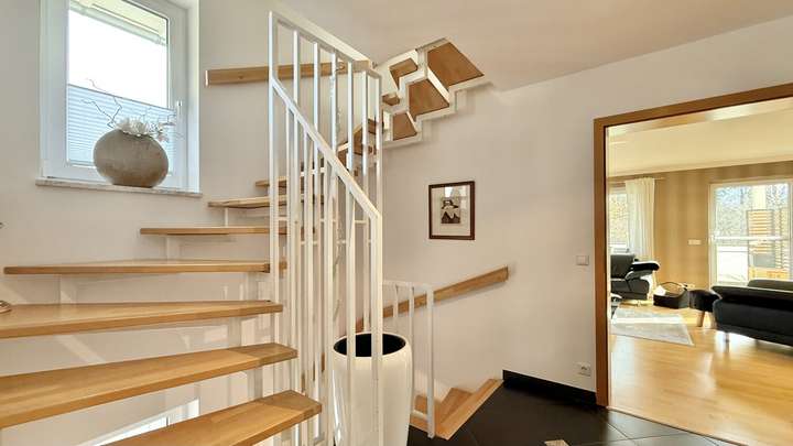 Dieses Familienhaus verbindet durchdachte Architektur mit ansprechender Ausstattung und Komfort. Die großzügige Wohnfläche, gepaart mit der hochwertigen Ausführung und der durchgeführten Modernisierung, bildet eine attraktive Grundlage für ganz unterschiedliche Lebensentwürfe.